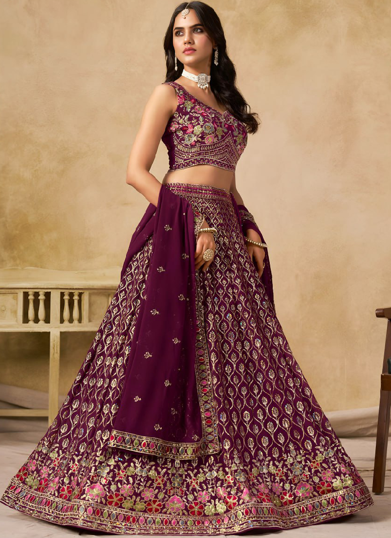 - A must-have wine color embroidered lehenga for women who love stylish fashion with premium craftsmanship.