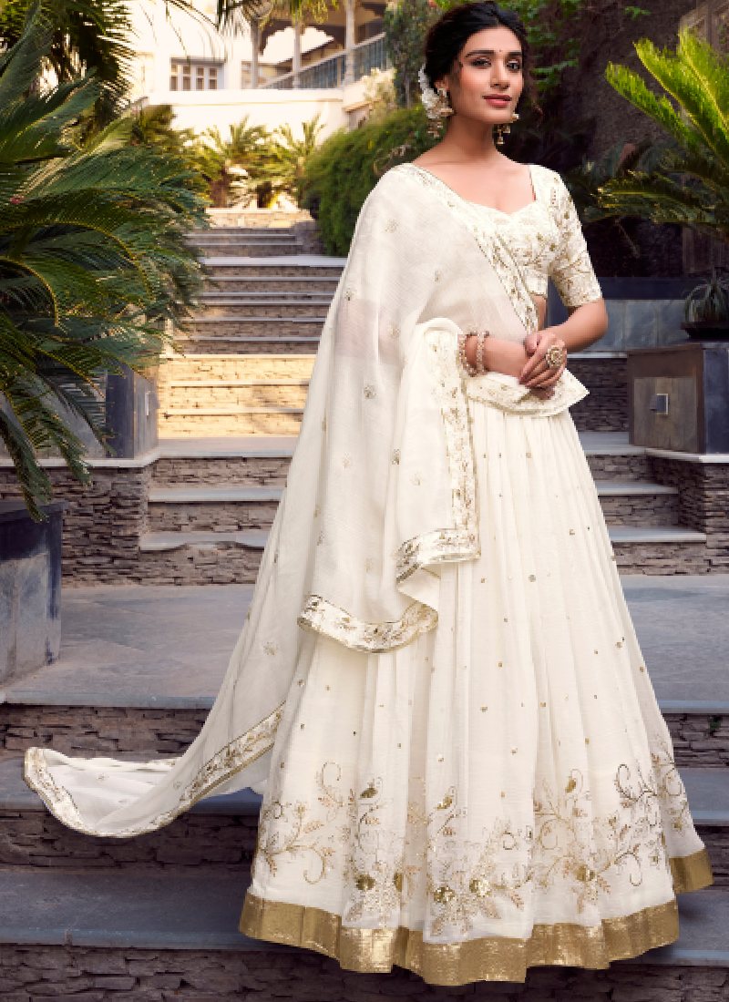 Elegant Silver Glossy Sequin Embroidery White Designer Lehenga Choli