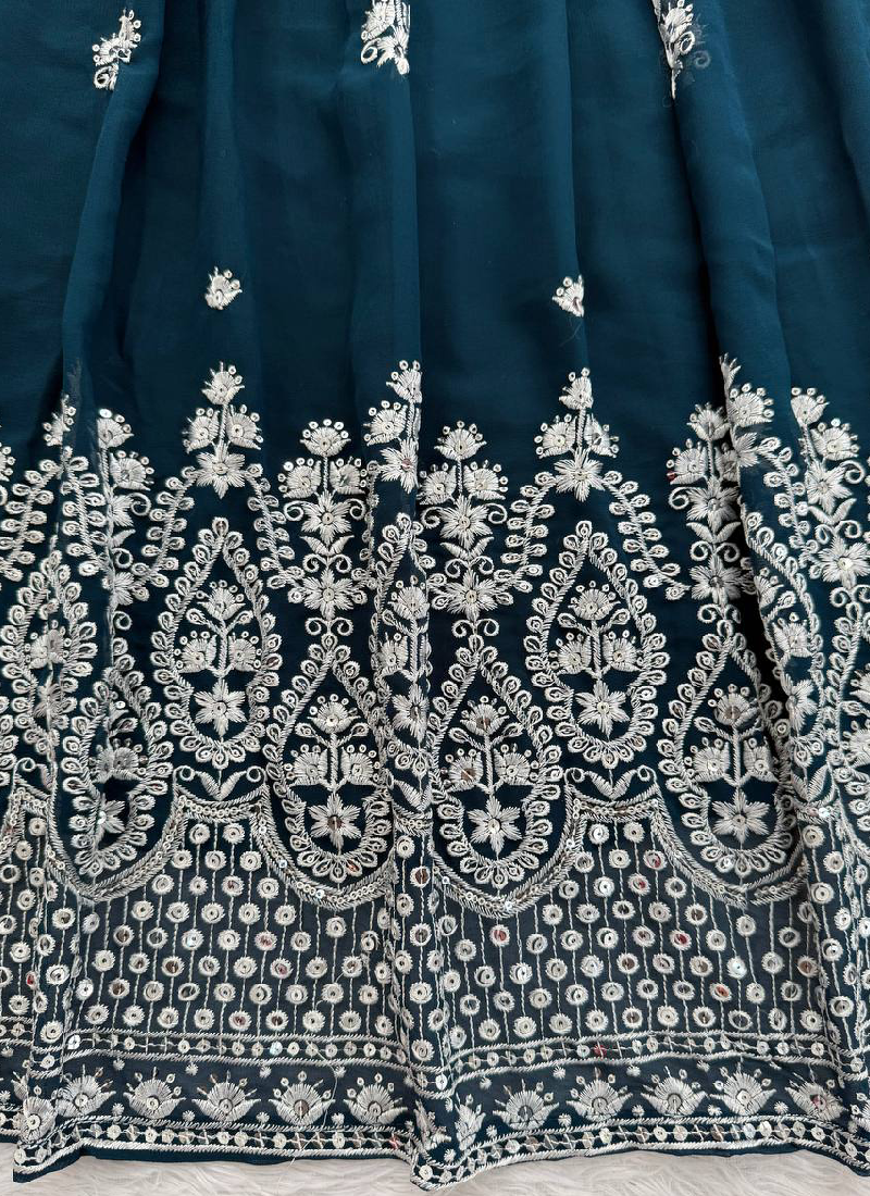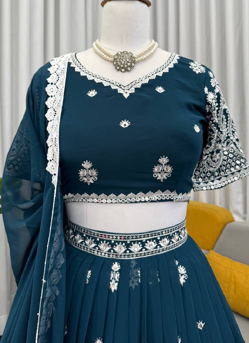 Embroidered Teal Blue Georgette Lehenga Choli Set For Women