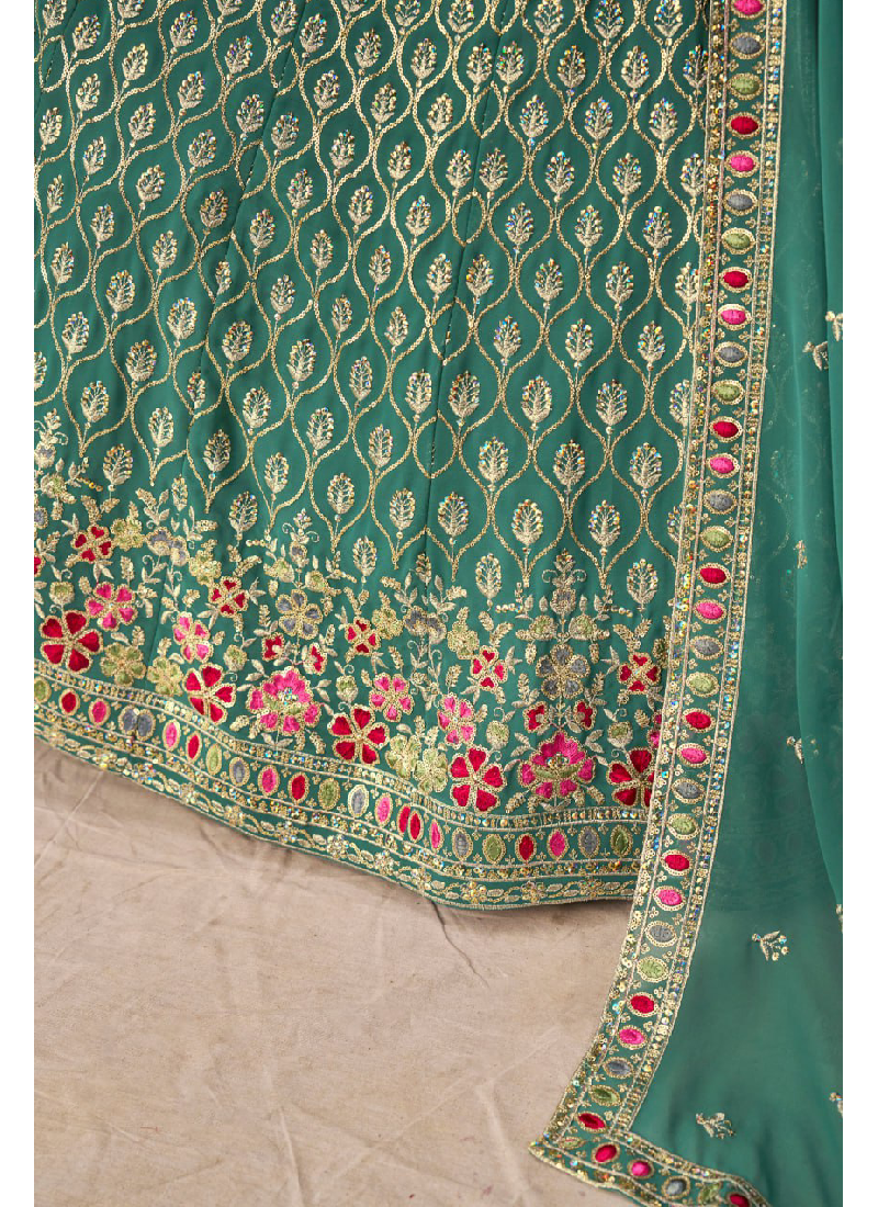 - Step into unforgettable charm with this party wear green lehenga choli, designed to make every moment camera-ready.