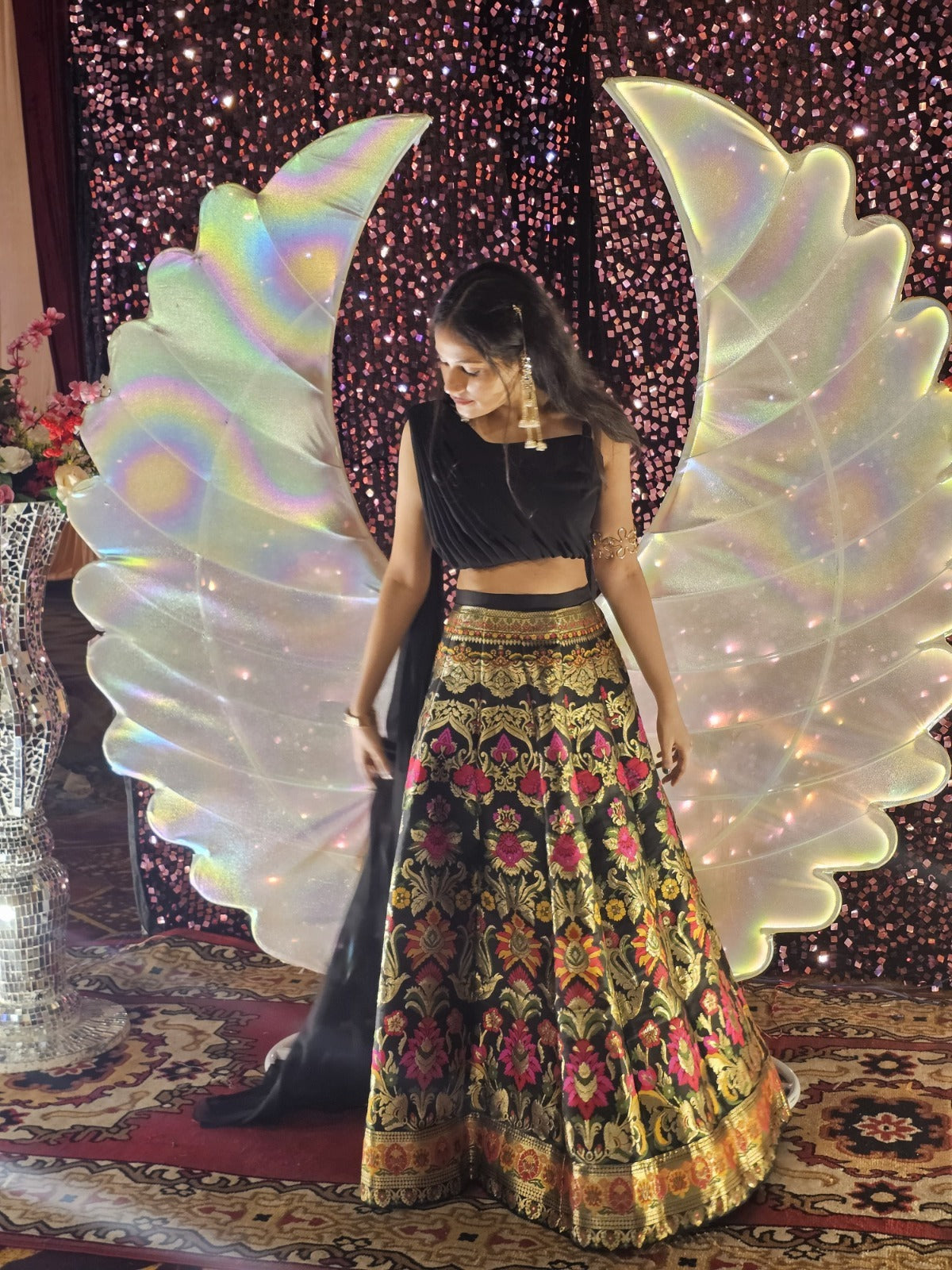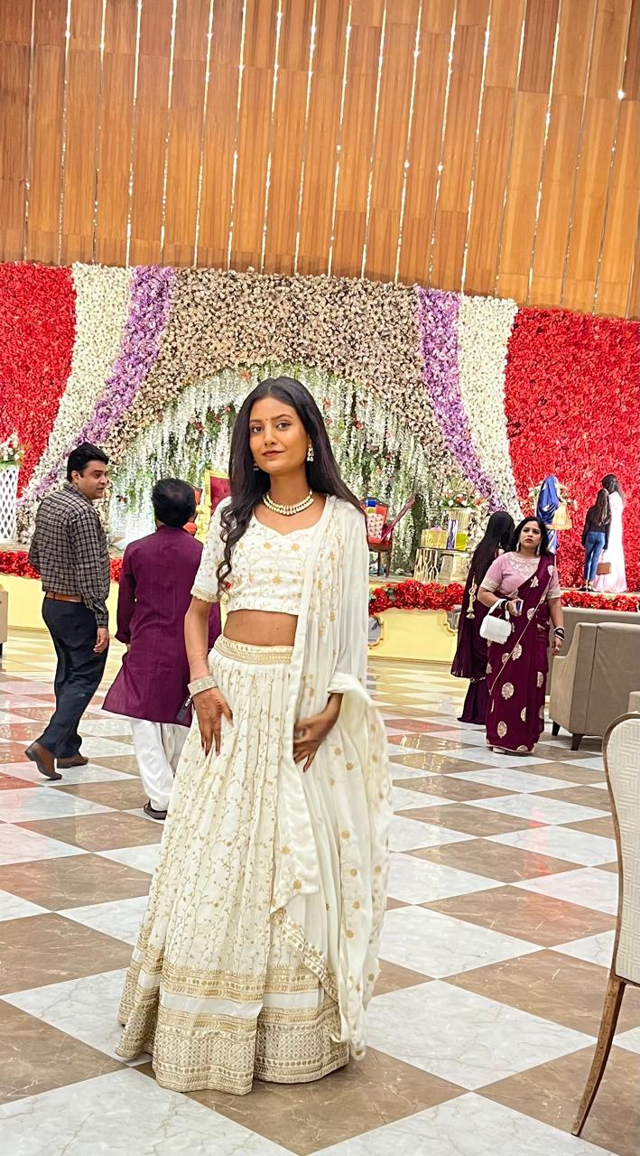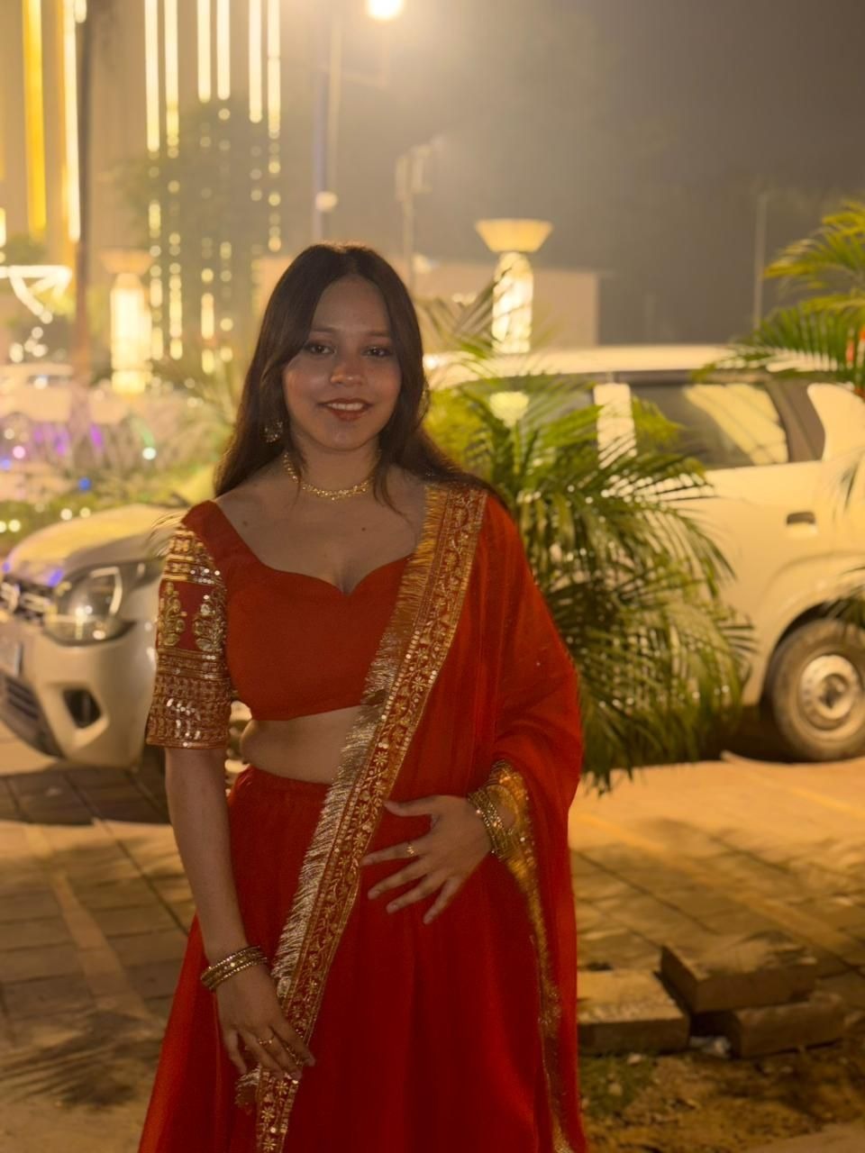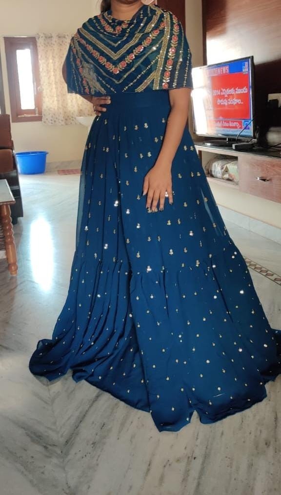 - It comes with a matching wine color butter crepe material petticoat; it comes only in fabric.