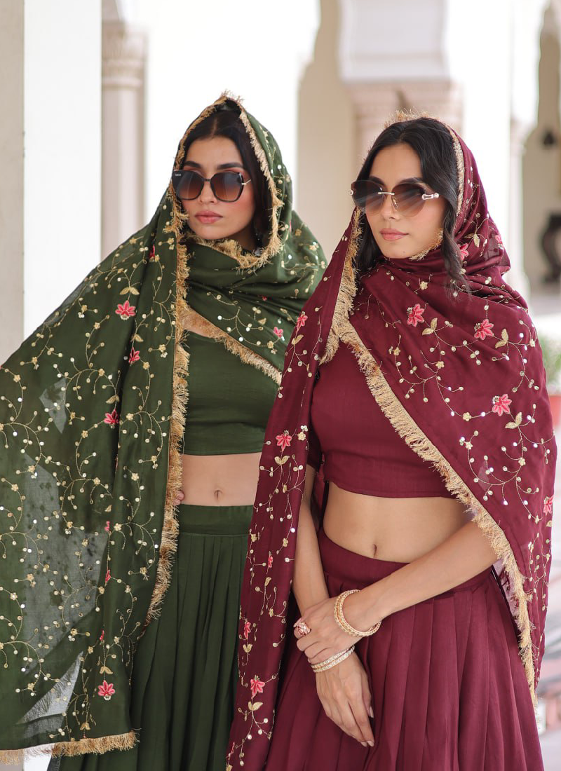 - Shine with grace in this stunning vichitra silk lehenga set, crafted to make every occasion unforgettable.