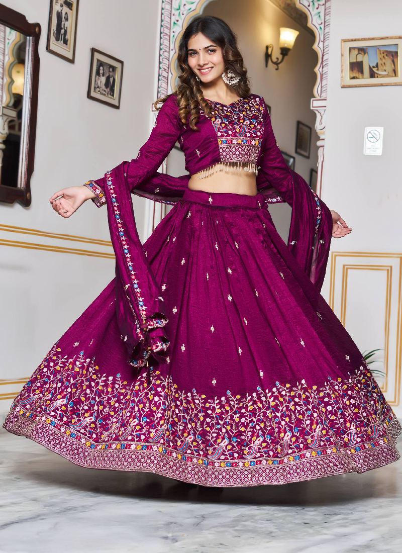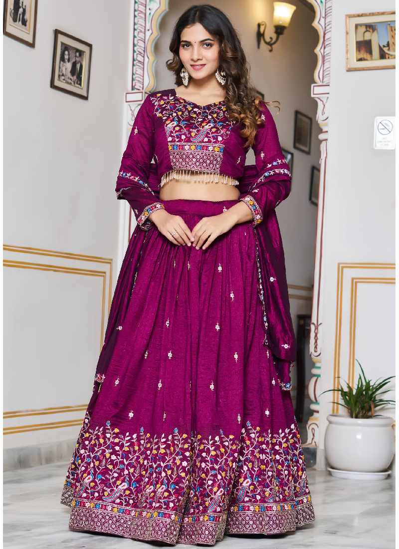 - Step into timeless elegance with this beautifully crafted pure vichitra silk lehenga set, designed for modern festive grace.