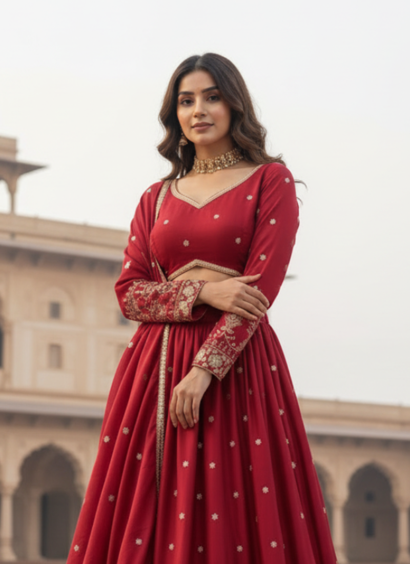 - This maroon satin lehenga choli set is perfect for weddings, receptions, sangeet nights, and premium party functions.