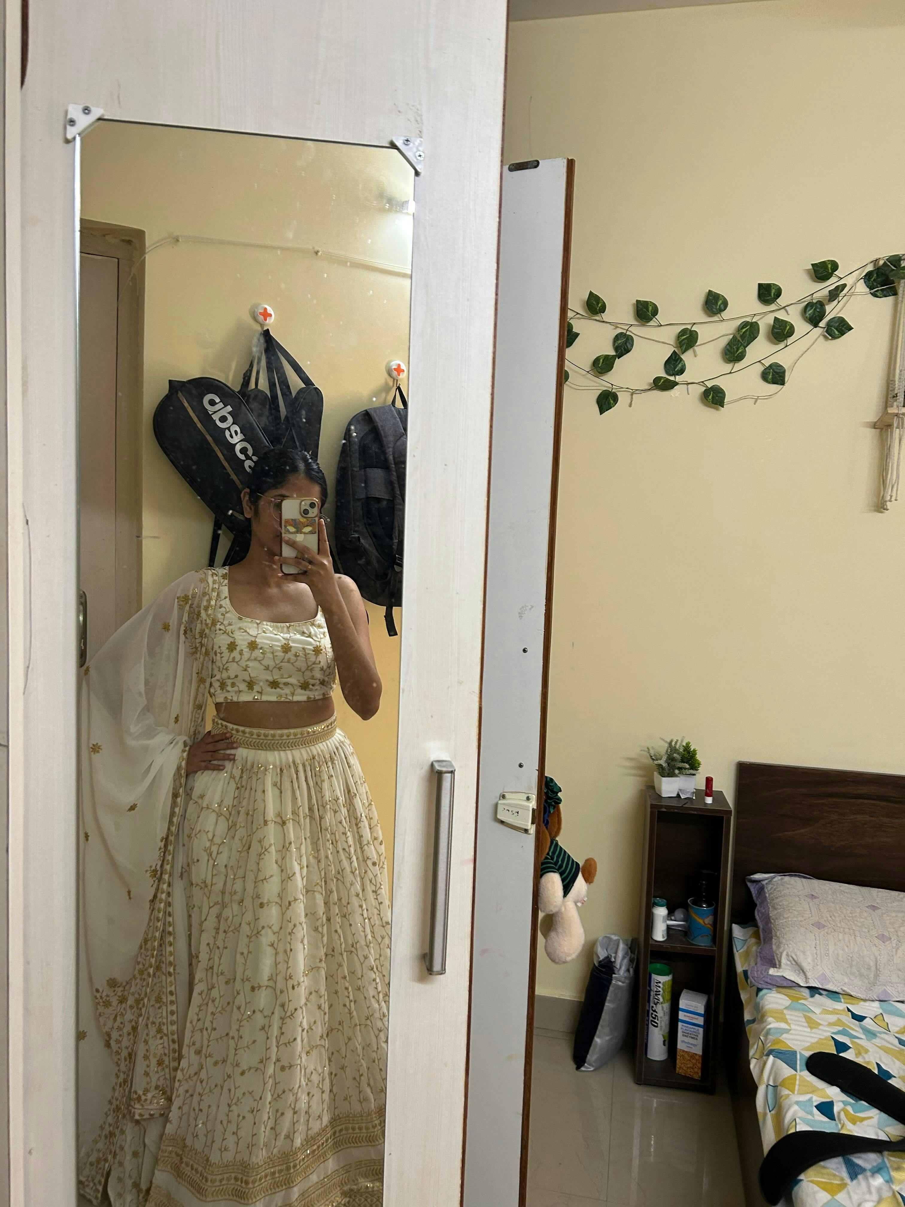 - Complete your look with this lehenga choli with a georgette zari sequence embroidery work white dupatta.